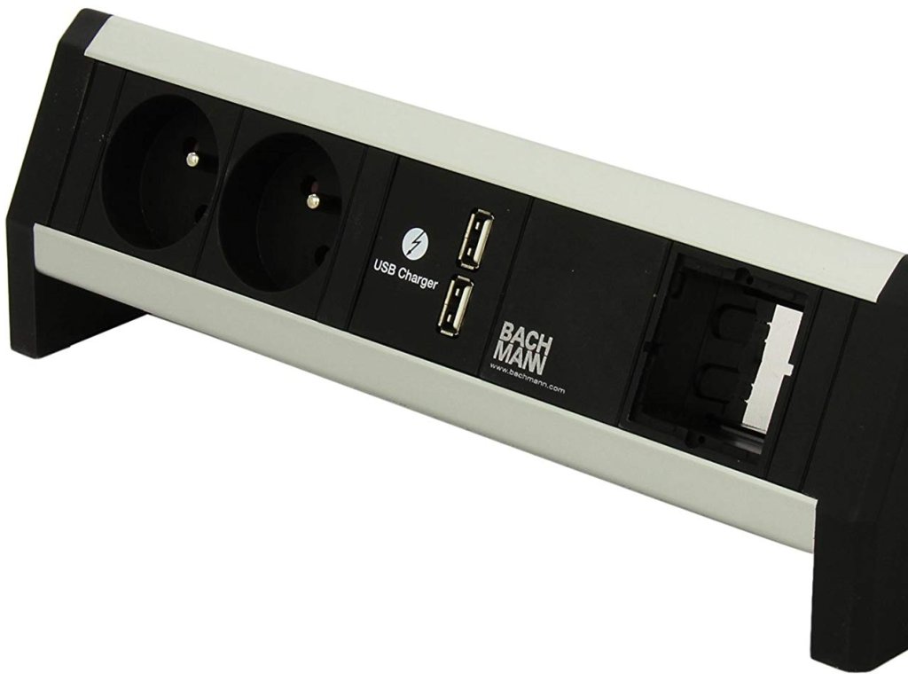 Elektro zásuvka Bachmann Desk 1 - 2x 230V, 2x USB nabíječka a 1x slot pro uživatelský modul 902.0185