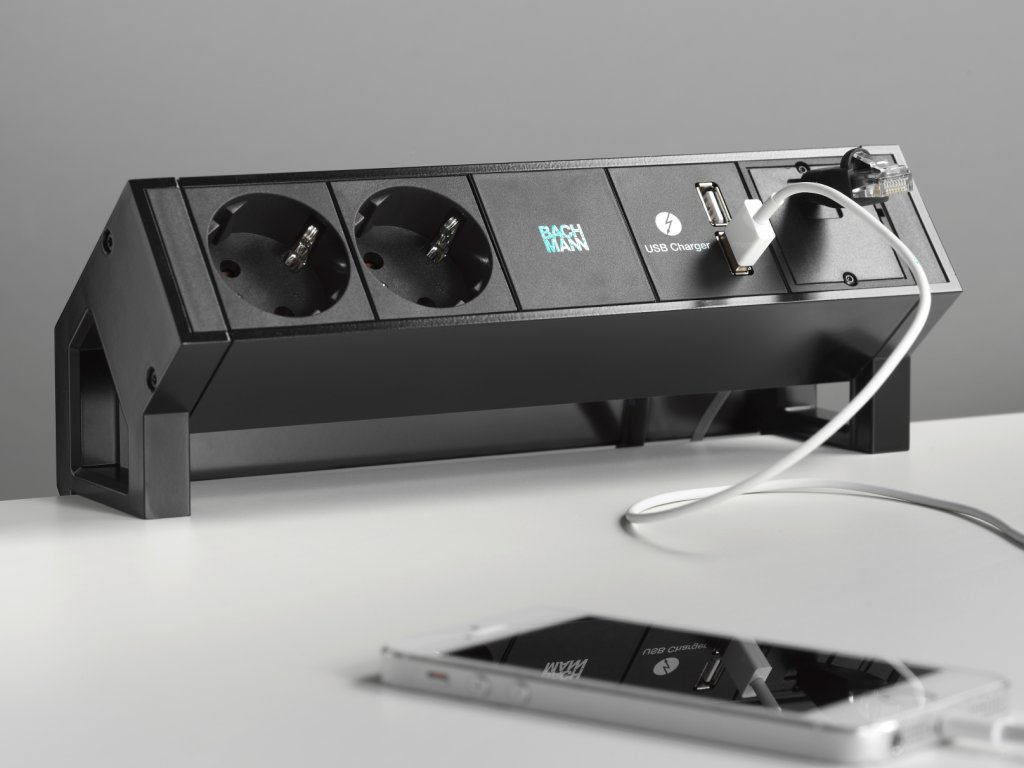 V jednoduchosti je krása, právě tímto heslem se vyznačuje zásuvka, od výrbce Bachmann, Desk 2. Díky uživatelským modulům si můžete zásuvku nakonfigurovat dle vašich potřeb (HDMI, USB, datová zásuvka RJ45 aj.). Tyto moduly lze v budoucnu jednoduše vyměnit. Součástí zásuvky jsou také dvě USB nabíječky. Jedná se o rychlonabíječky s výstupním proudem až 3,15A.