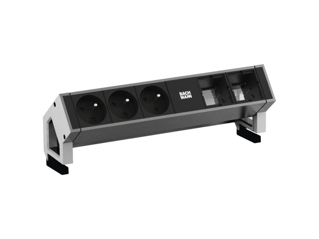 Elektro zásuvka Bachmann Desk 2 - 3x 230V, 2x uživ. modul nerez 902.405