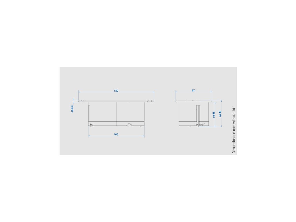 - zavřená zásuvka je prostorově velmi úsporná (139 x 67 mm)