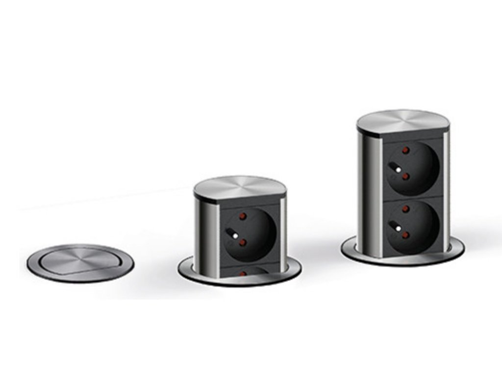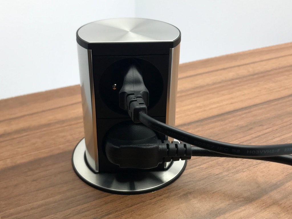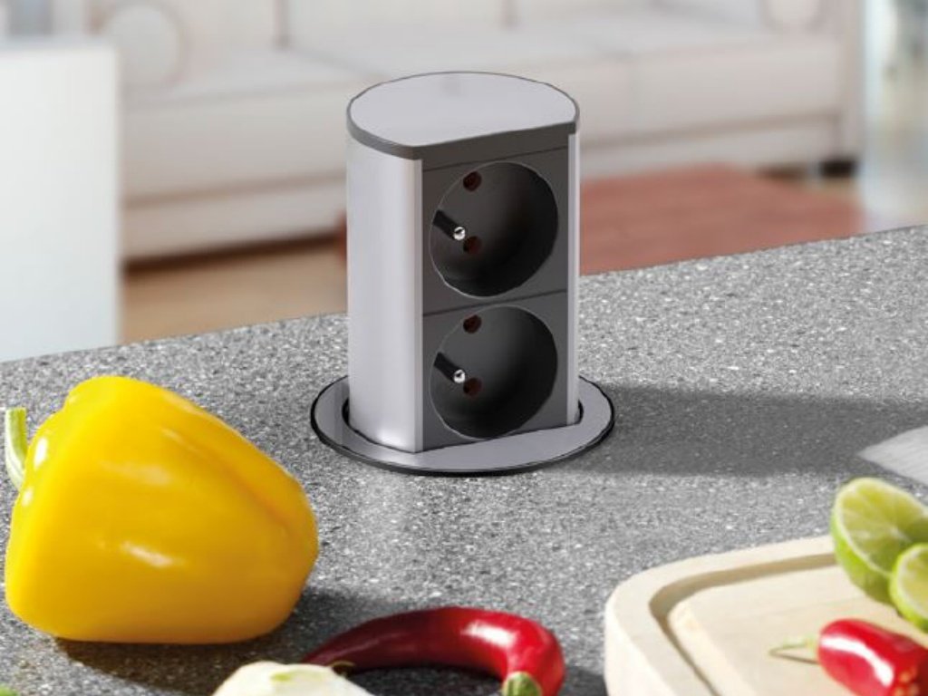 Zápustná elektro zásuvka Bachmann Elevator Vám vše vyřeší. Je vybavena 2x 230V zásuvkou a díky kompaktnímu designu neruší linie nábytku. Instalace je jednoduchá - do otvoru 80 mm vložíte zásuvku, ze spodní strany přišroubujete pojišťovacím kroužkem, zajistíte kabeláž a je hotovo.