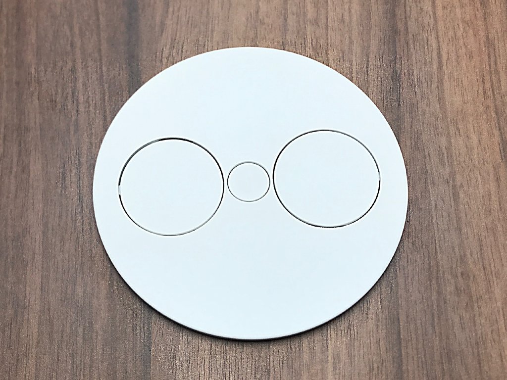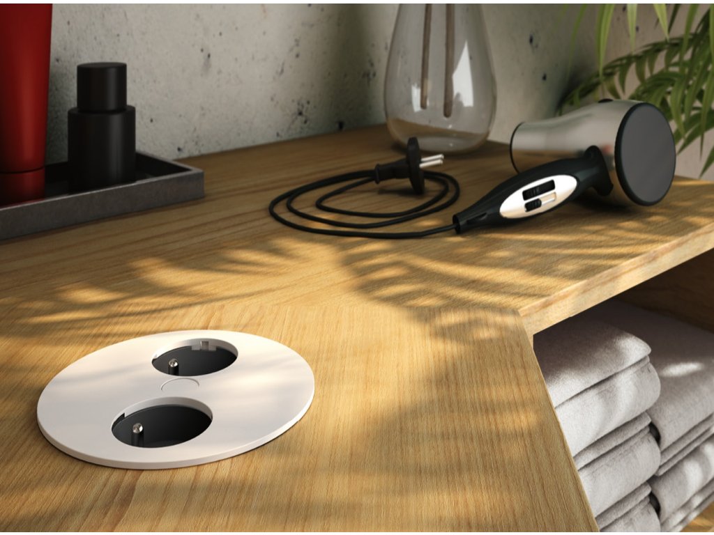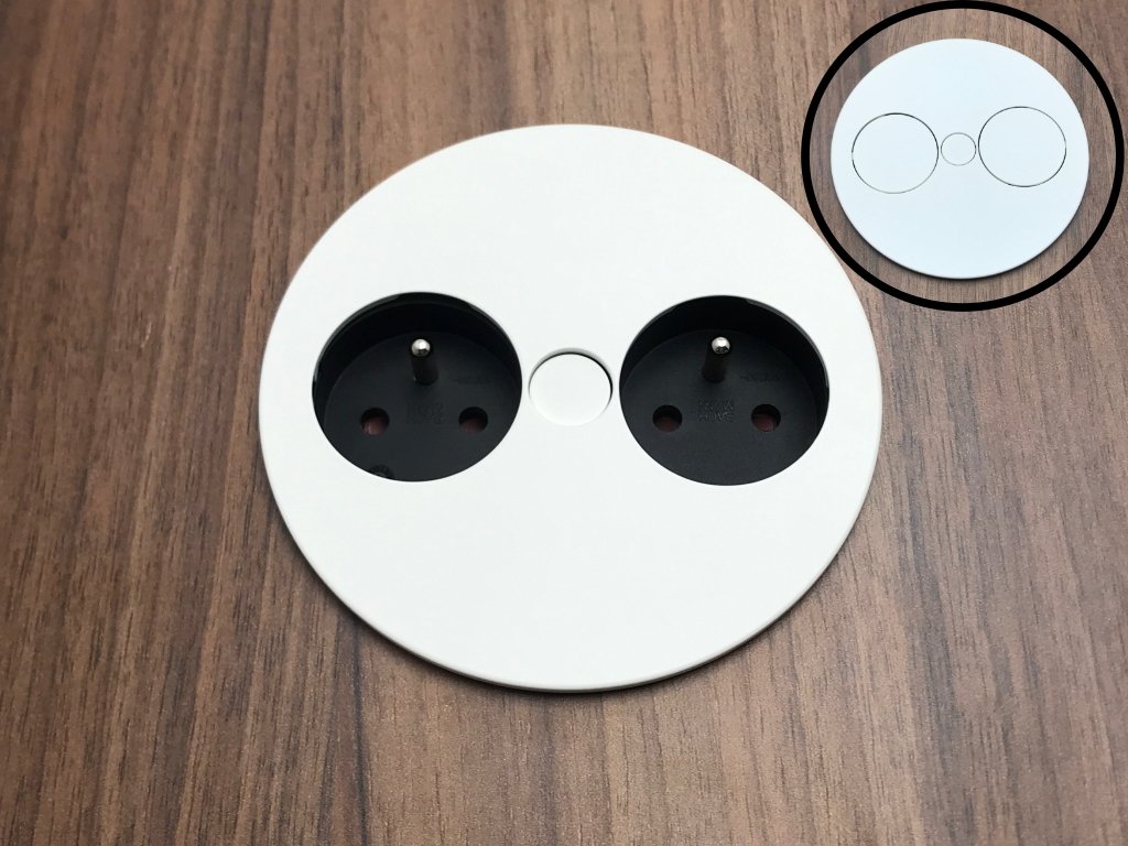 Vrchní krycí část je několikanásobně lakovaná, aby bylo zabráněno poškození běžným používáním. Po stlačení středu a otočení krytu dojde k odkrytí dvou zásuvek 230V, naopak při nepoužívání zásuvek je jednoduše zakryjete a tím pádem neruší design pracovní plochy.