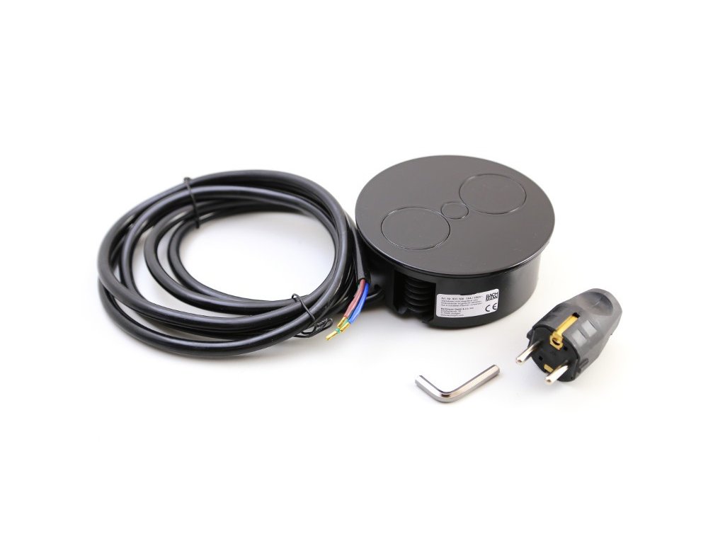 Zápustná elektro zásuvka Bachmann Twist USB matná černá 931.132 se díky svému designovému vzhledu a kompaktních rozměrů hodí do všech typů místností (kancelář, kuchyň, obývací pokoj atd.) a také skvěle zapadne do moderního interiéru. Zásuvka je prostorově úsporná při instalaci do pracovní desky stolu nebo kuchyňské desky. Přívodní kabel je vyveden tak, aby hloubka instalace byla pouze 40 mm, tím je umožněna instalace i nad zásuvkami kuchyňské linky.