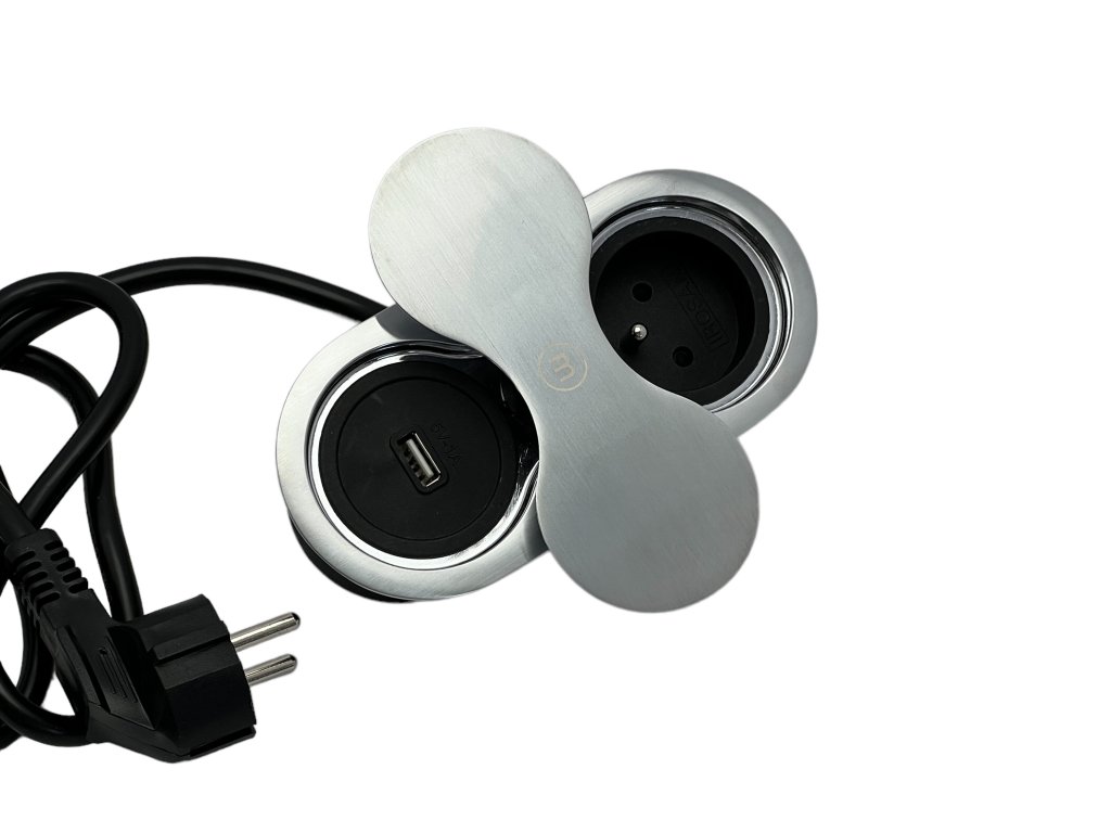 Elektro zásuvka EIGHT USB + 1x 230V nerez