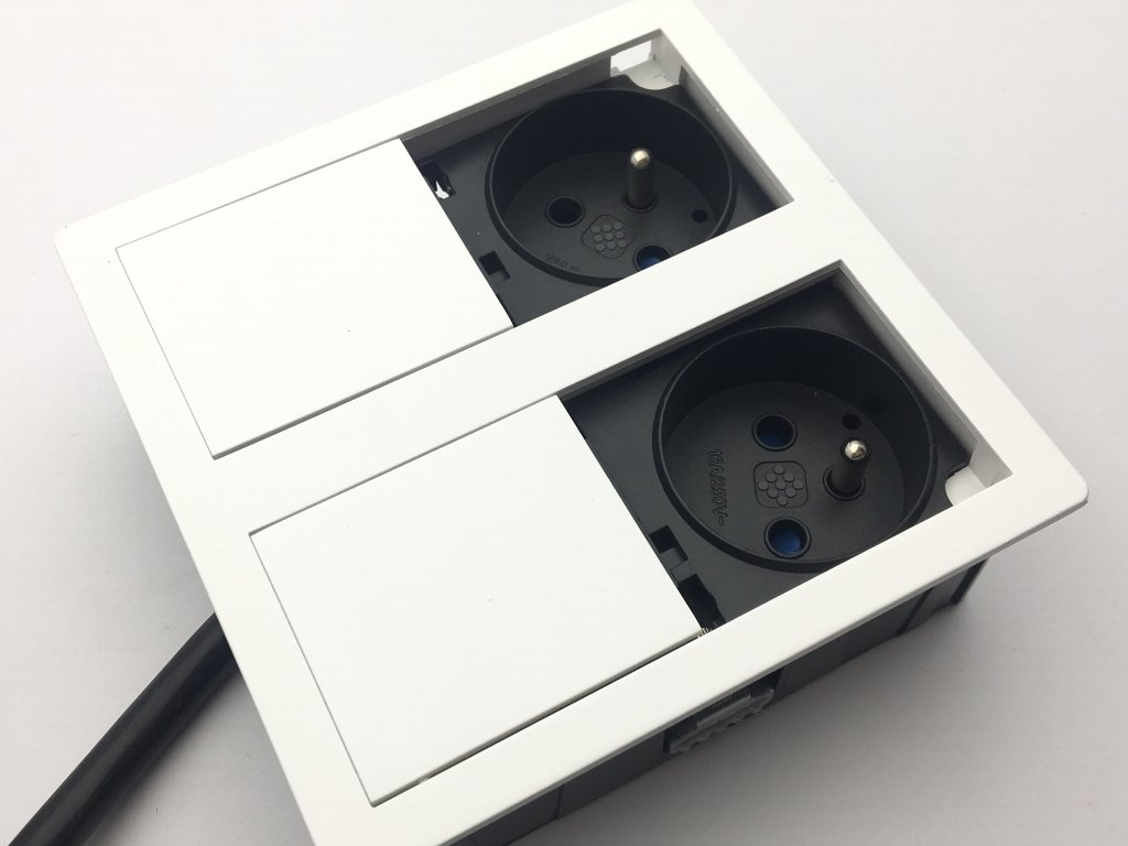 Designová zásuvka, která lze využít v různých typech místností i nábytků. Jedná se o uzavřený modul, který lze montovat i do měkkých materiálů jako jsou například sedačky.