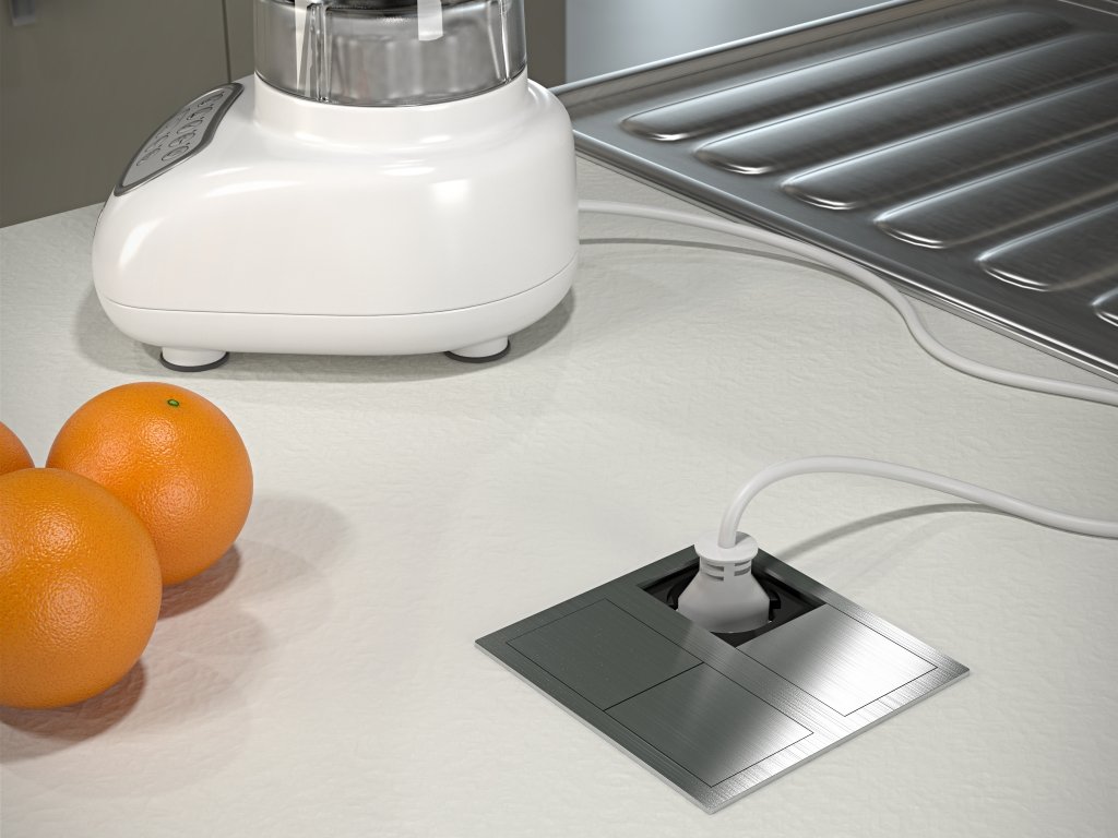 Designová zásuvka, která lze využít v různých typech místností i nábytků. Jedná se o uzavřený modul, který lze montovat i do měkkých materiálů jako jsou například sedačky.