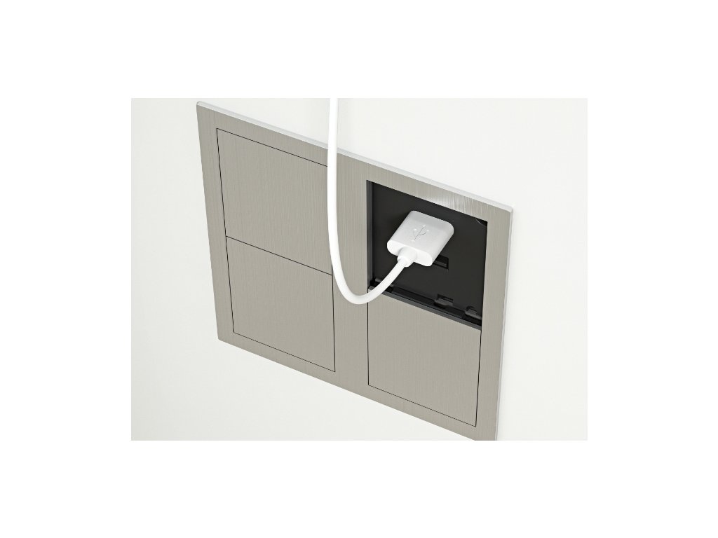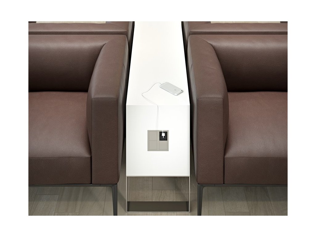 Designová zásuvka, která lze využít v různých typech místností i nábytků. Jedná se o uzavřený modul, který lze montovat i do měkkých materiálů jako jsou například sedačky.