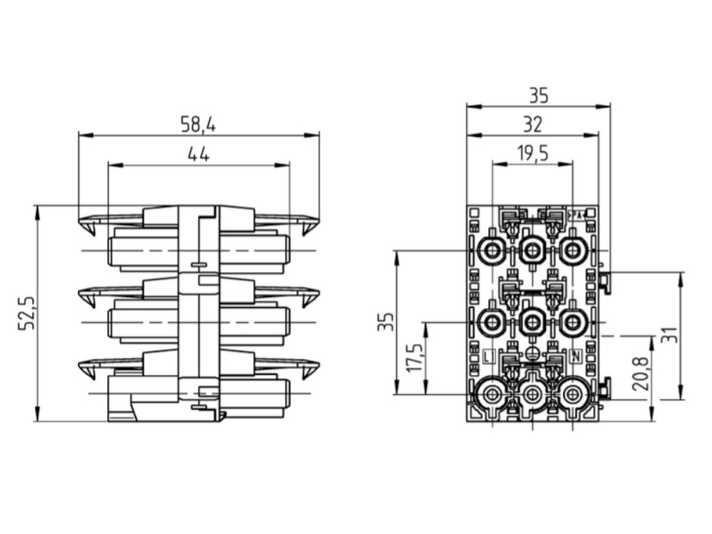 Odbočovací blok 5x vstup pro systémy s konektory GST18 375.541