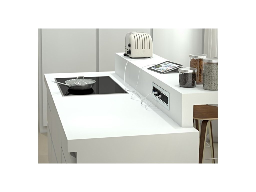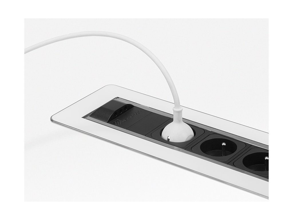 Moderní a designová skrytá zásuvka, která je bohatě vybavena konektivitou. Hodí se nejen do kanceláří a zasedacích místností, ale také například do pracoven, konferenčních sálů či hotelů.