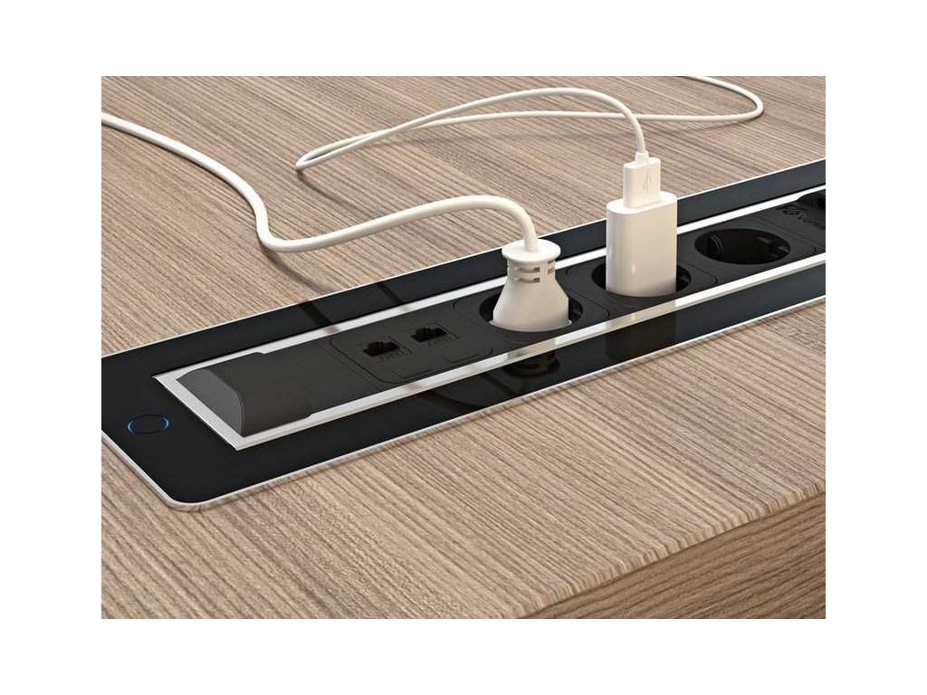 Moderní a designová skrytá zásuvka, která je bohatě vybavena konektivitou. Hodí se nejen do kanceláří a zasedacích místností, ale také například do pracoven, konferenčních sálů či hotelů.