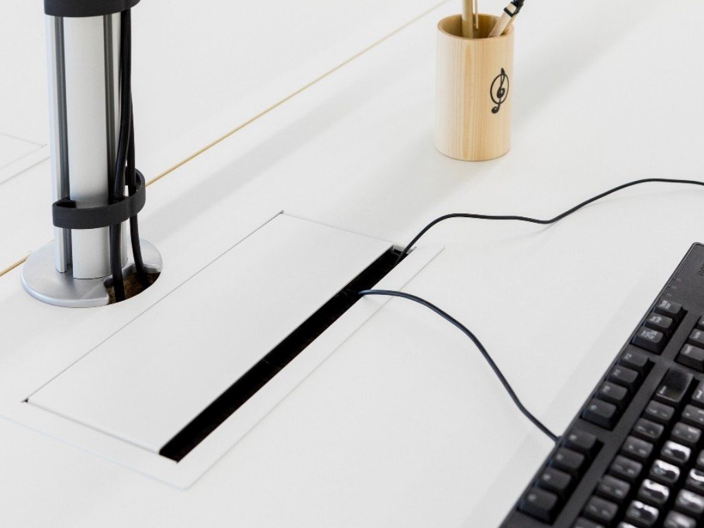 Robustní výklopný rám pro zabudování do desky stolu nebo nábytku. Jedná se o kovový rám v krásné bílé matné povrchové úpravě s jemnou strukturou. Rám je dostupný ve třech velikostech a třech barvách.