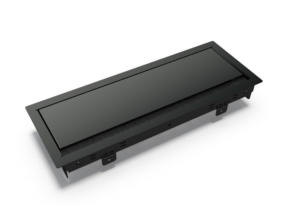 Robustní výklopný rám pro zabudování do desky stolu nebo nábytku. Jedná se o kovový rám v krásné černé matné povrchové úpravě s jemnou strukturou. Rám je dostupný ve třech velikostech a třech barvách.