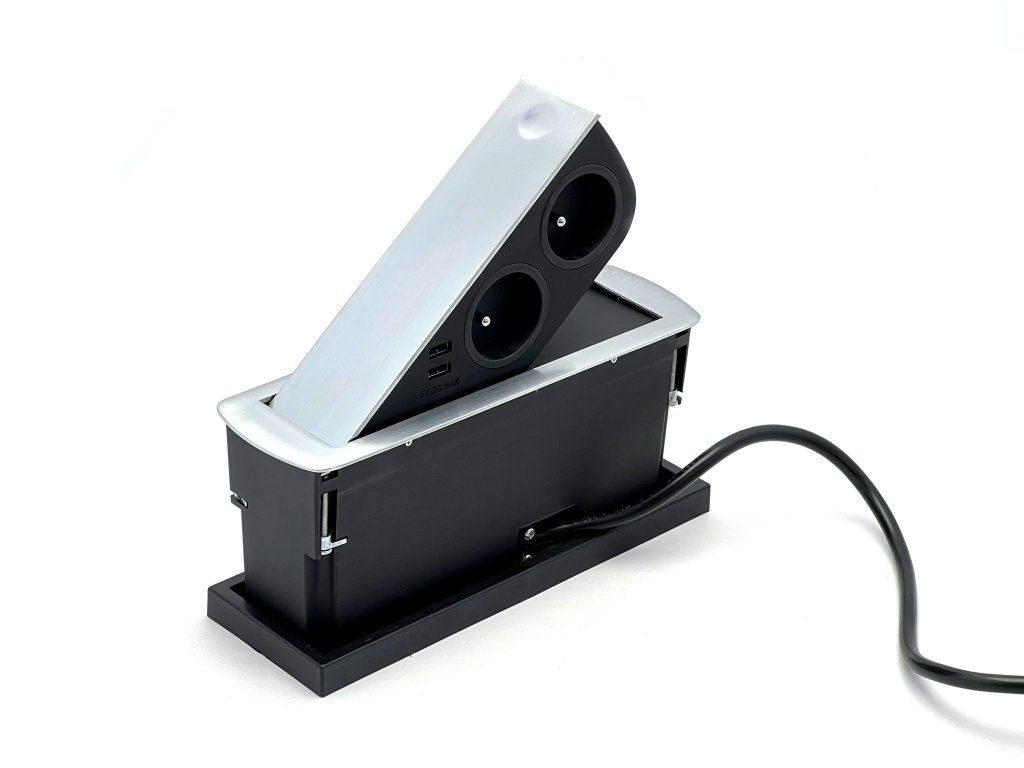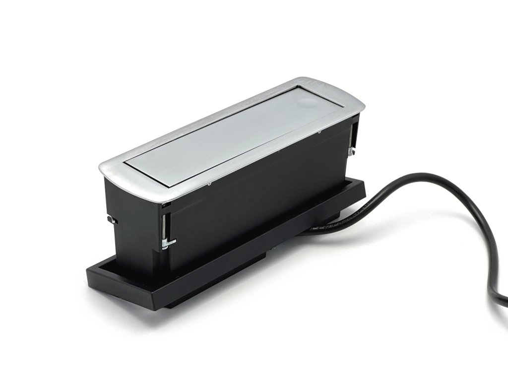 Elektro zásuvka CIZO je díky svému modernímu vzhledu a velmi povedenému provedení, oblíbená hlavně na poli kancelářských stolů. Čistý design při zavřeném stavu zásuvky a elegantní otevření zásuvky.