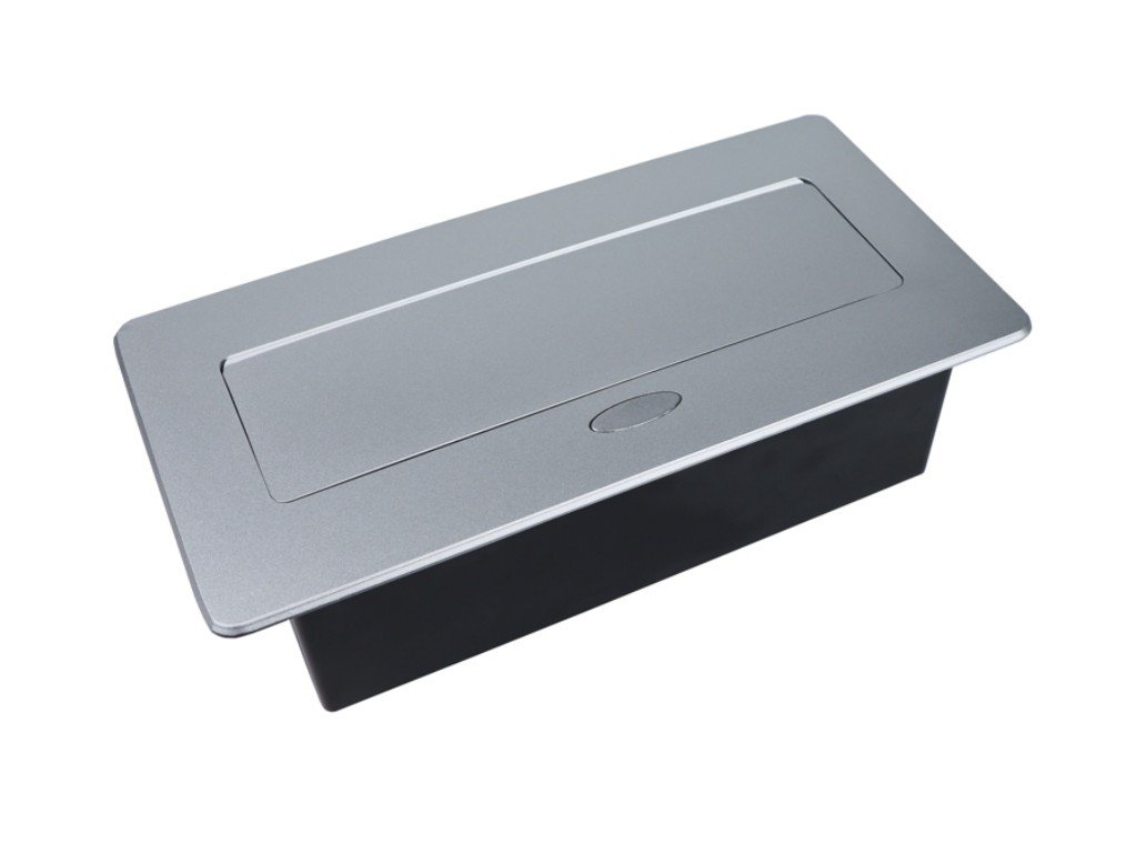 Zásuvka s moderním a ergonomickým designem pro instalaci do pracovního stolu nebo nábytku (např. obyvací stěna). Zásuvky lze využít také v kuchyni v dostatečné vzdálenosti od dřezu. Zásuvka má stupeň ochrany IP20.