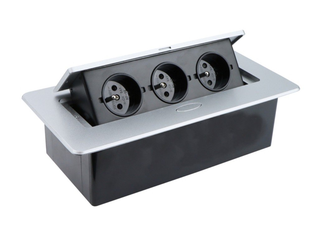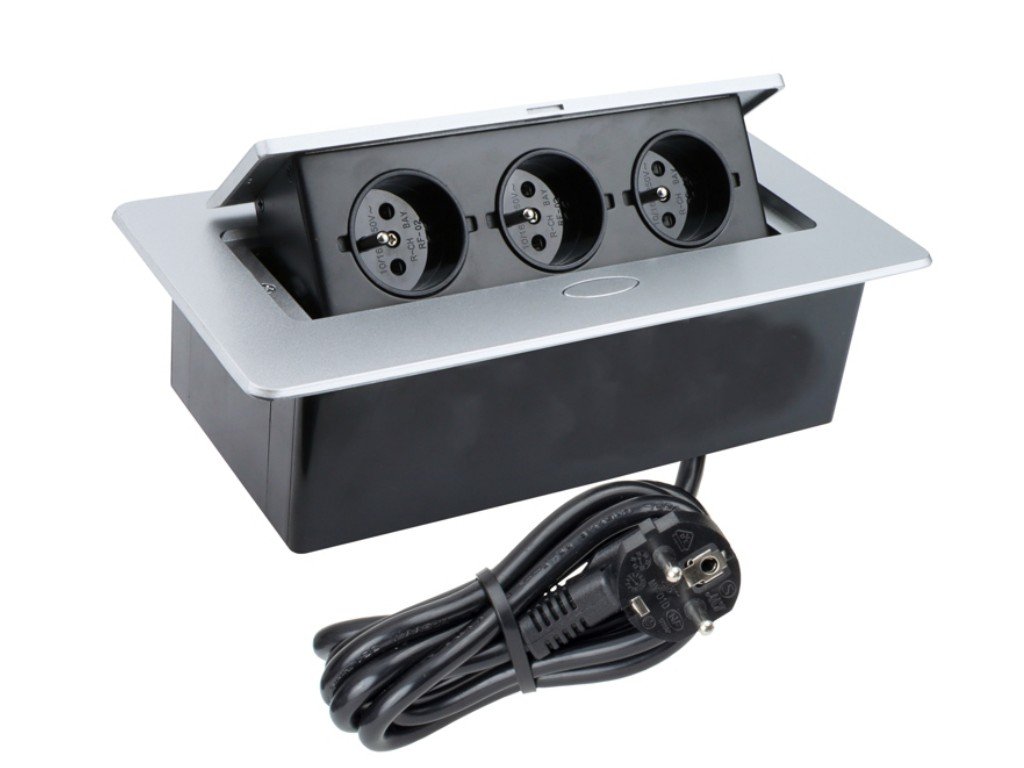 Výklopná vestavná zásuvka BOX 3x 230V s připojeným 3m nap. kabelem - hliník