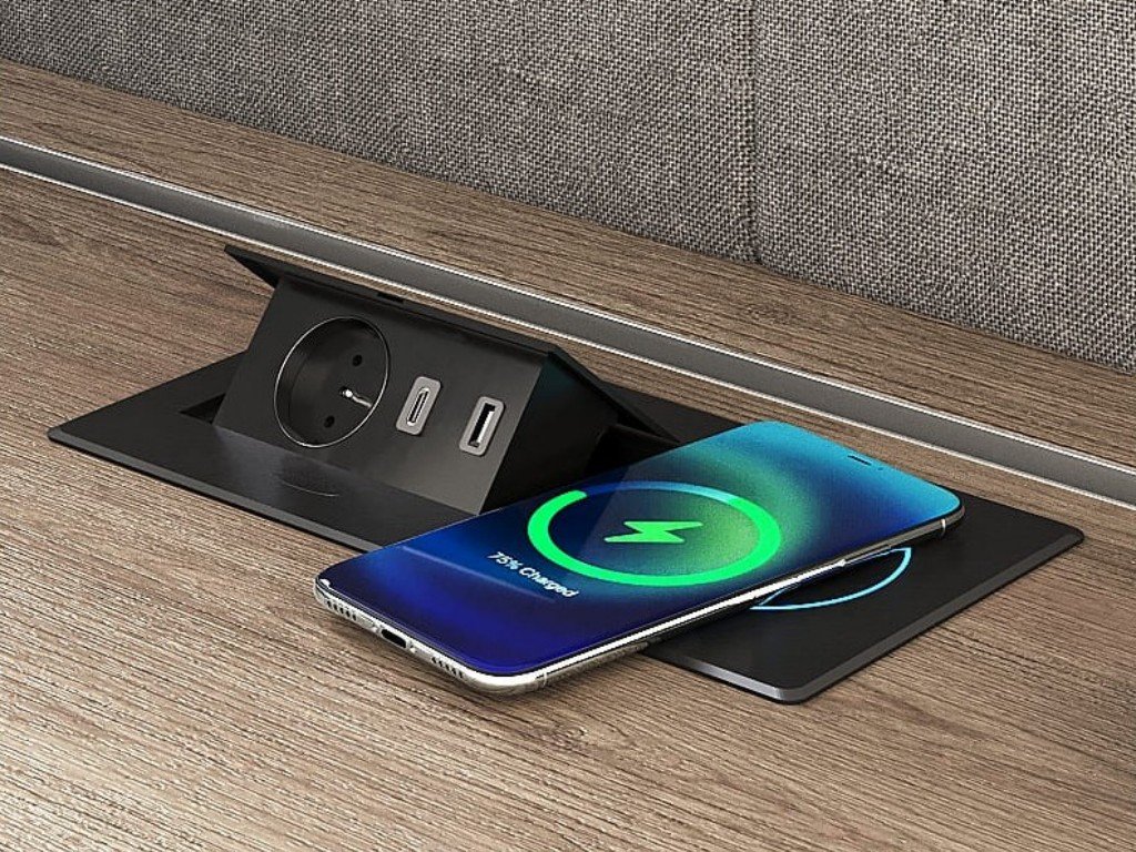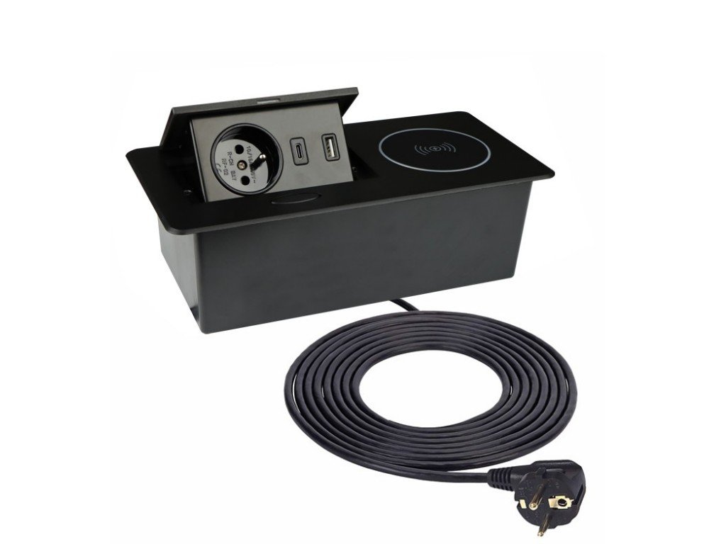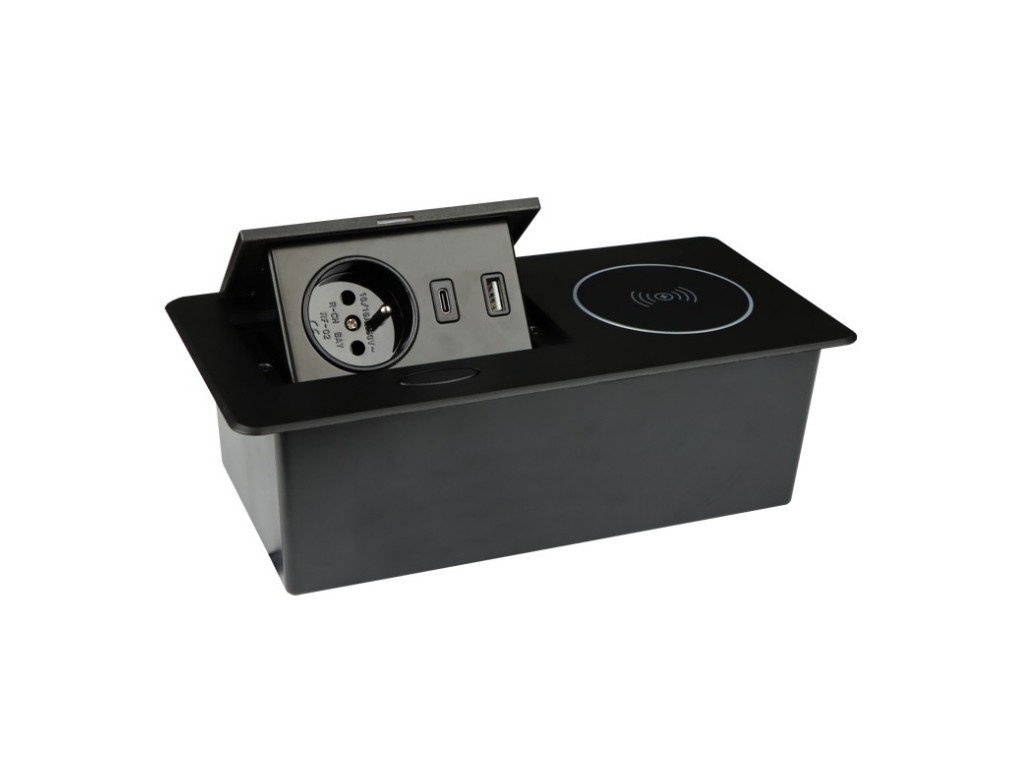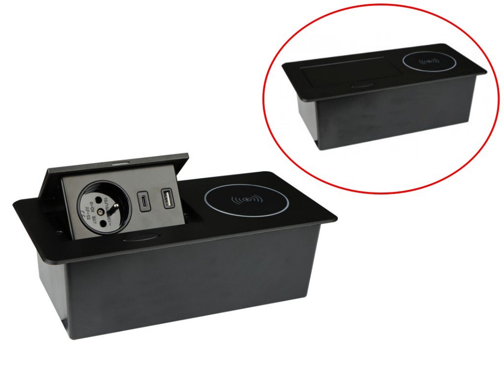 Výklopná zásuvka ZEBOX s bezdrátovou nabíječkou - černá