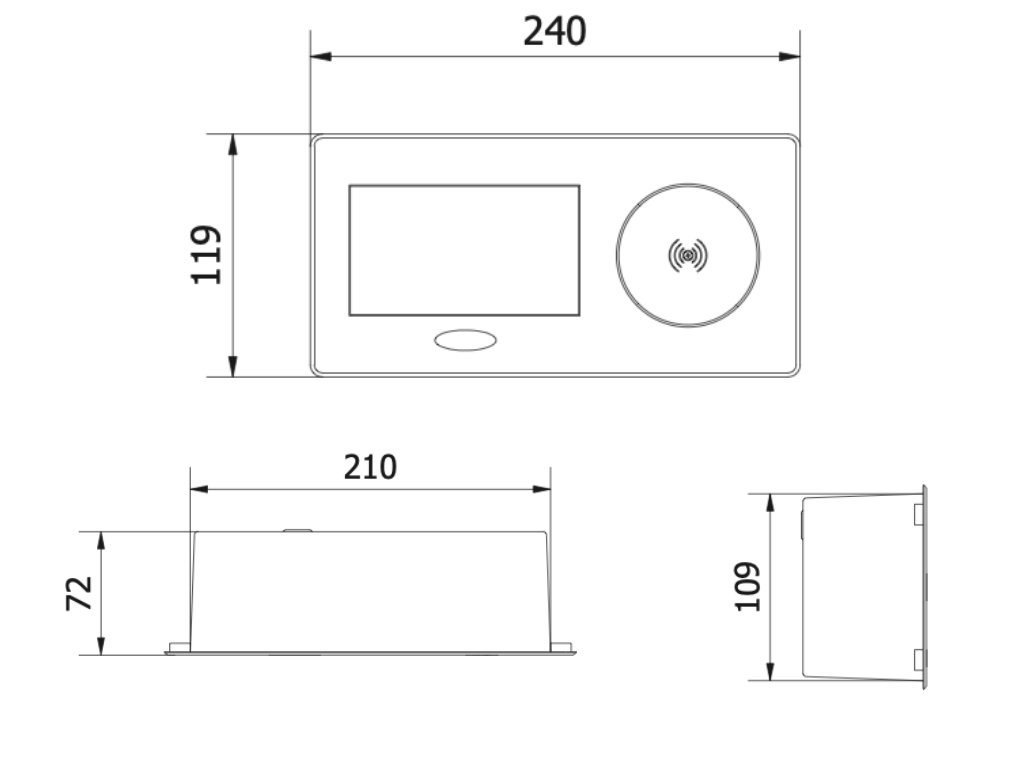 Výklopná zásuvka ZEBOX s bezdrátovou nabíječkou - hliník