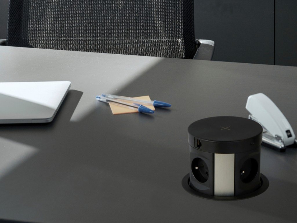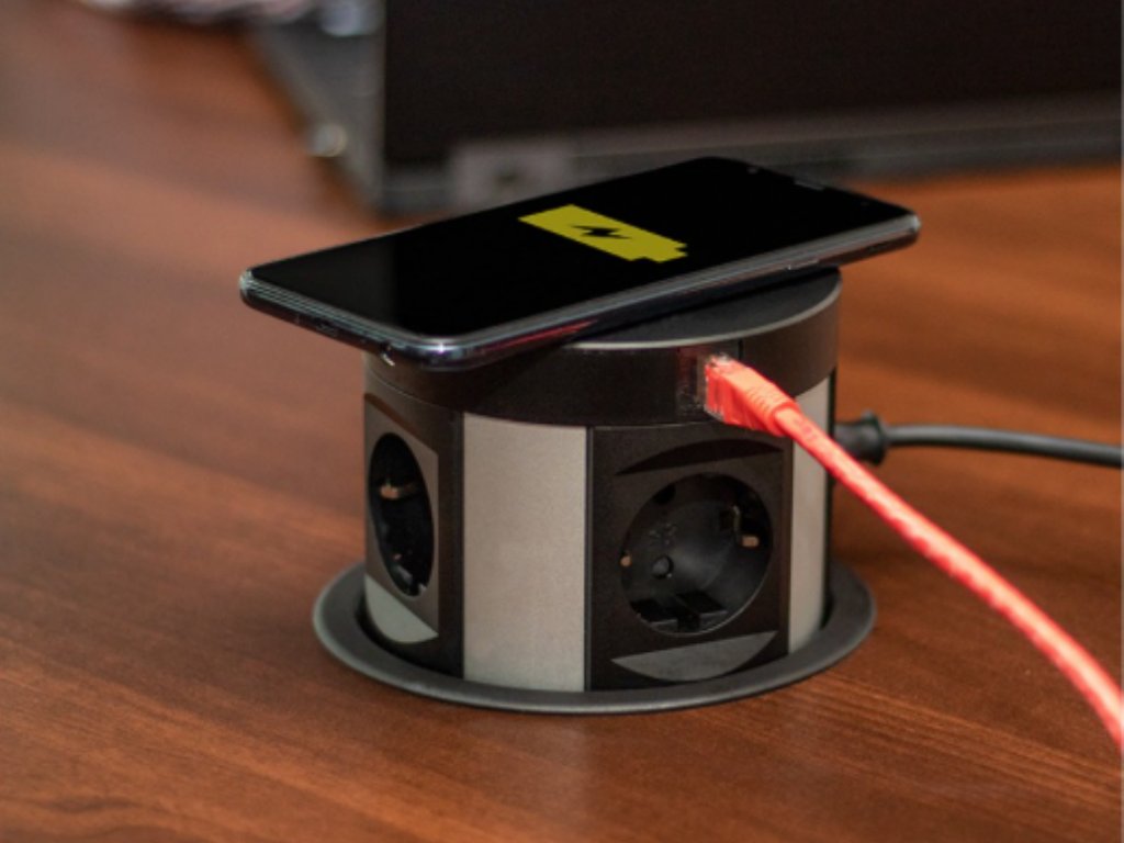 Praktické řešení elektrických zásuvek převážně pro kanceláře a pracovny. Sloupek je vybaven 4x zásuvkou 230V, 2x datovou zásuvkou RJ45, 1x nabíjecí USB port „A“ a 1x nabíjecí USB port „C“ (5V/3,1A - max 15,5W) a bezdrátovou nabíječkou na horním krytu (max 5W).