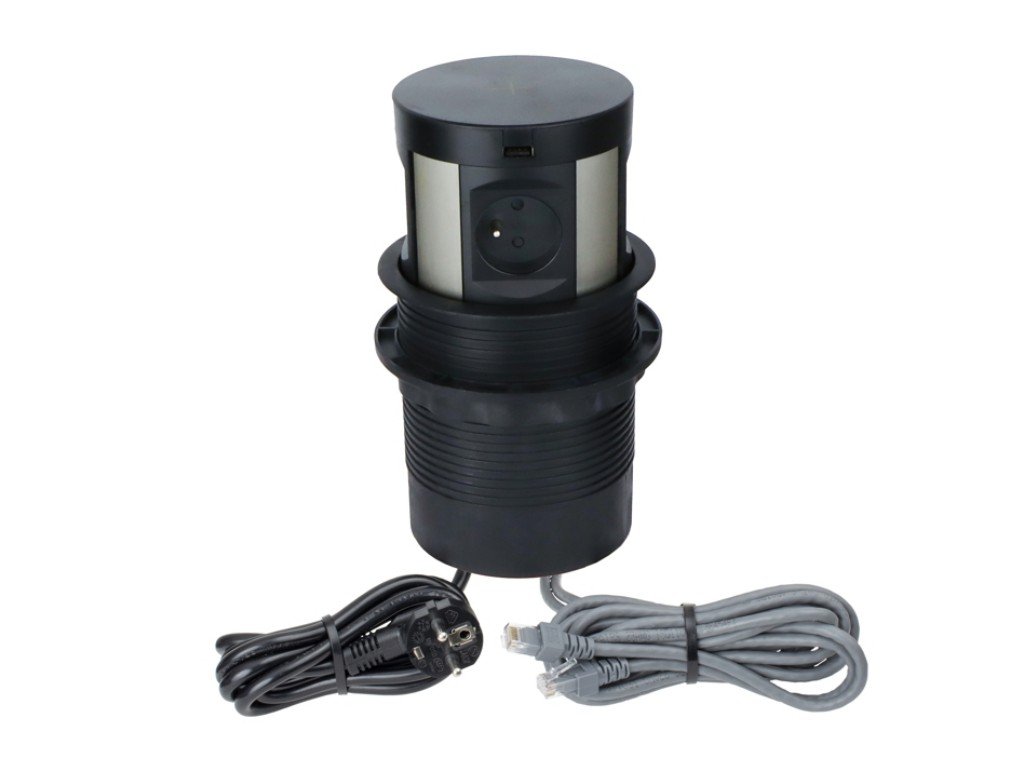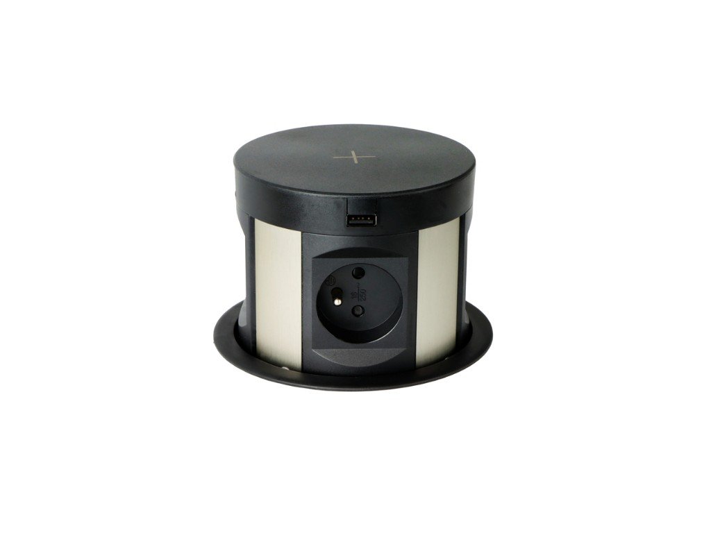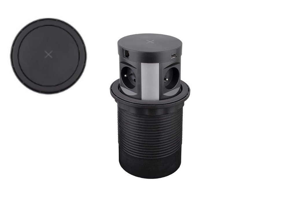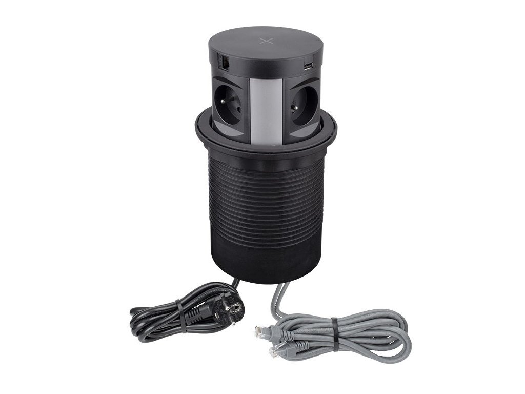 Výsuvný sloupek MULTI 4x 230V, 2xRJ45, A+C nab. a bezdrátová nabíječka černý