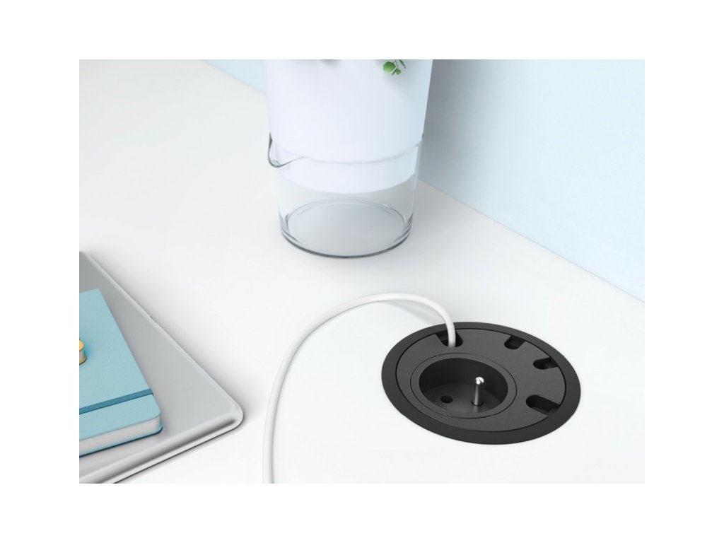 Zásuvka je vyrobena z tvrzeného plastu a montuje se do otvoru 80 mm. Balení obsahuje i plastový montážní kroužek, který lze nahradit s kovovými průchodkami LOOP ROUND (viz související položky) pro dosažení vyšší kvality díky kovovému provedení. Díky průchodkám Loop round je také možné si zvolit barevnou kombinaci dle preference. Zásuvka se jednoduše do průchodky zasune a otočí do zamknuté polohy.