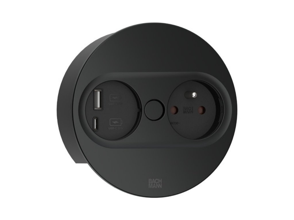 Zásuvka Bachmann Twist 2 - 946.106 s USB A+C nab. černá matná kulatá