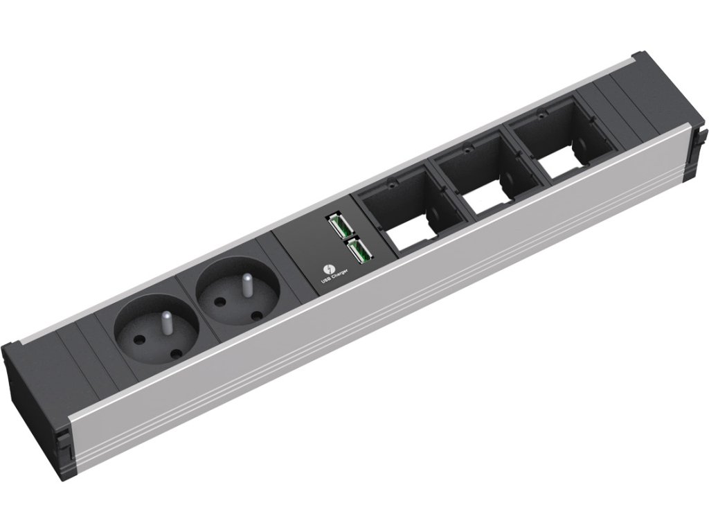 Zásuvková jednotka CONI dlouhá 2x 230V, 3x uživ. modul, 2x USB nabíječka 912.0172