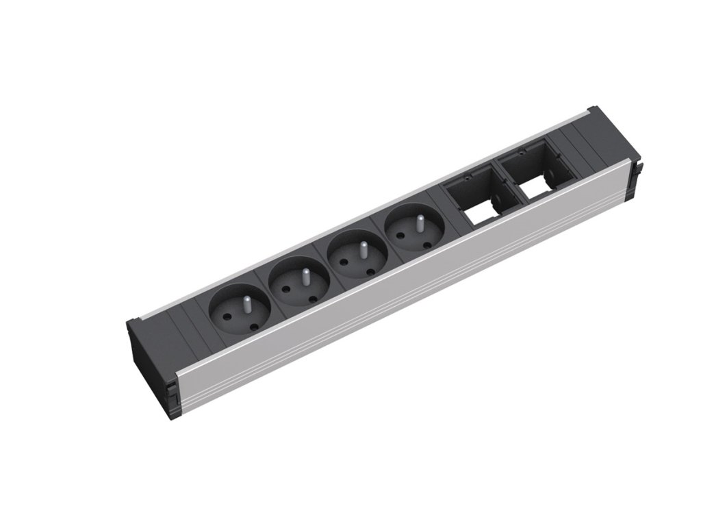 zásuvková jednotka pro systém zásuvek CONI. Profil zásuvkové jednotky je z eloxovaného hliníku.