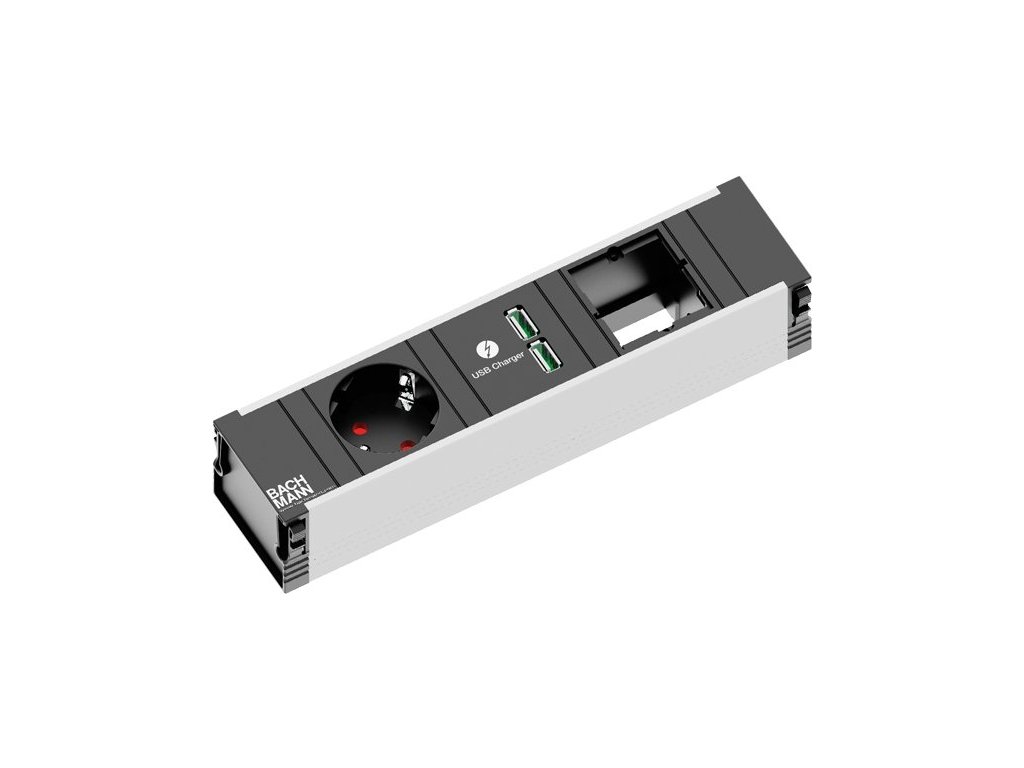 Zásuvková jednotka Bachmann CONI 3násobná - 1x uživatelský modul, 1x 230V, 2x USB nabíječka 912.0171