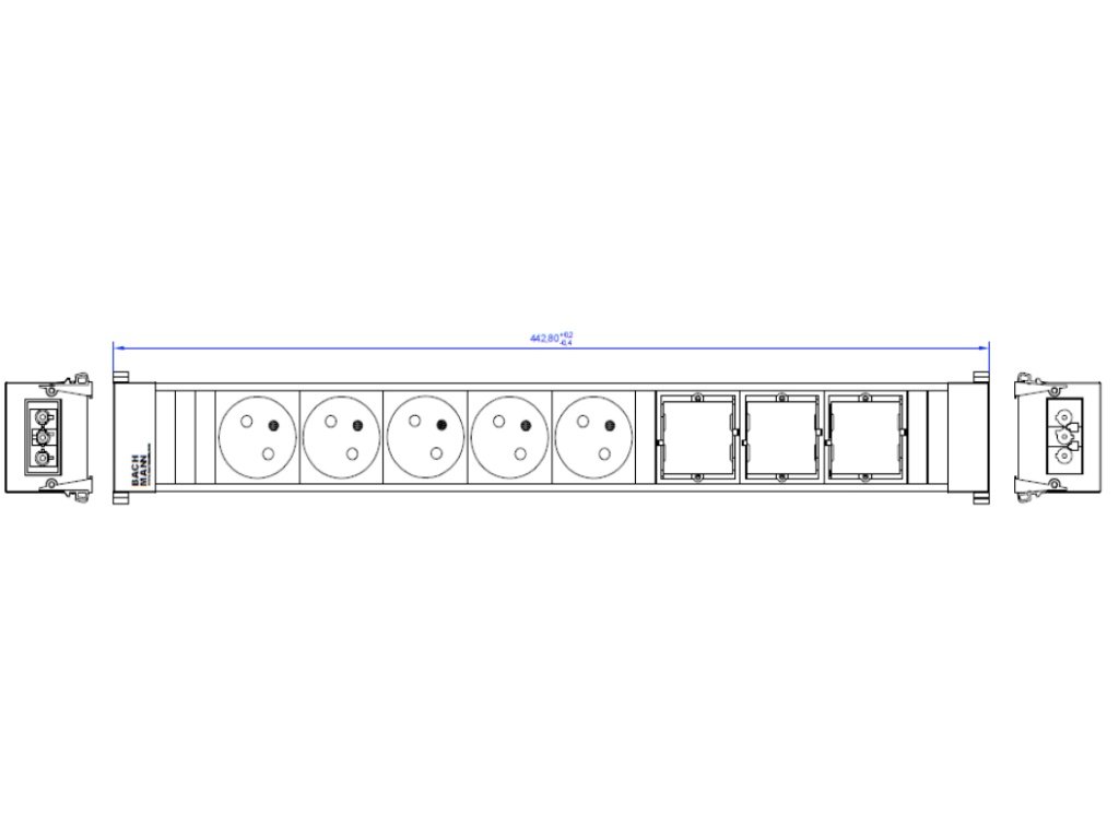 Zásuvková jednotka Bachmann TOP FRAME a CONFERENCE 8násobná - 6x uživatelský modul, 5x 230V 909.015