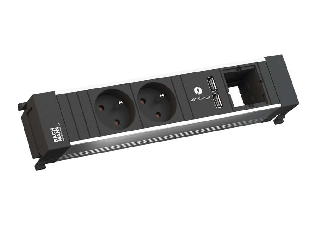Zásuvková jednotka Bachmann Power Frame / Cover 4násobná - 2x USB nabíječka, 1x uživatelský modul, 2x 230V 916.0411 - profil hliník