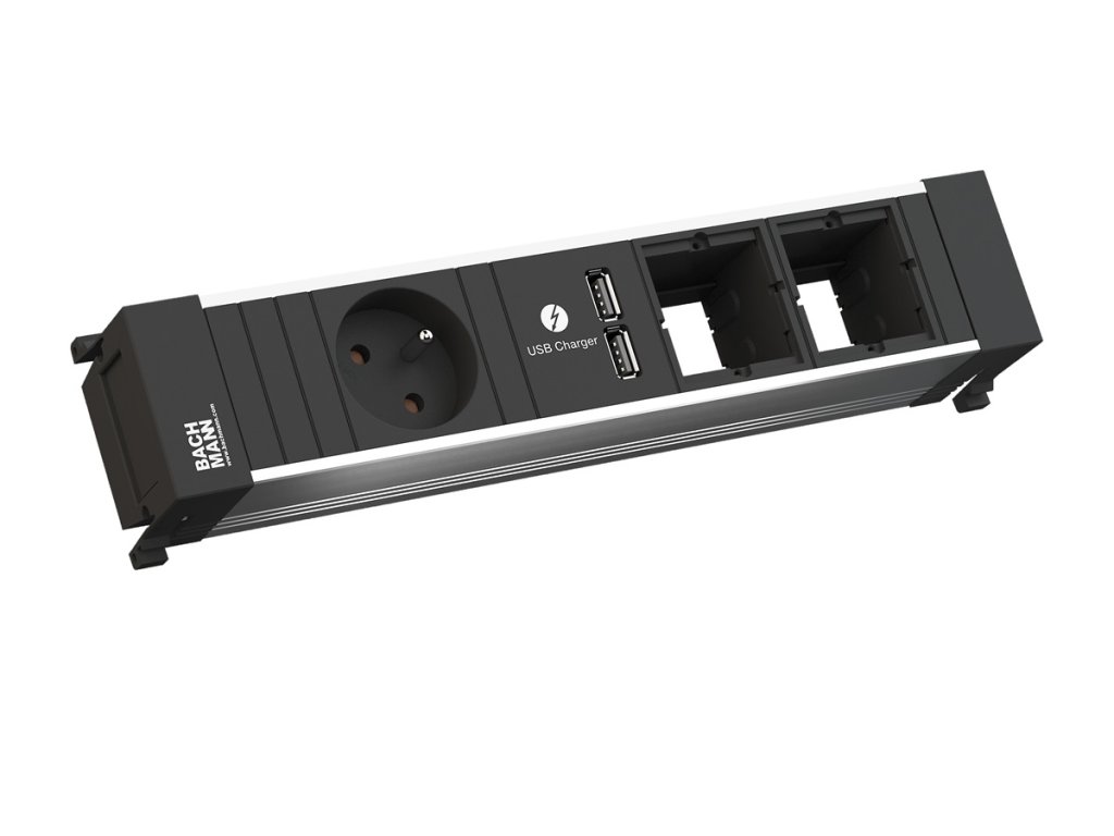 Zásuvková jednotka Bachmann Power Frame / Cover 4násobná - 2x USB nabíječka, 2x uživatelský modul, 1x 230V 916.0628 - profil hliník