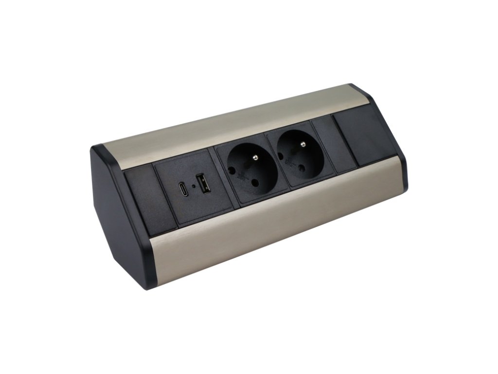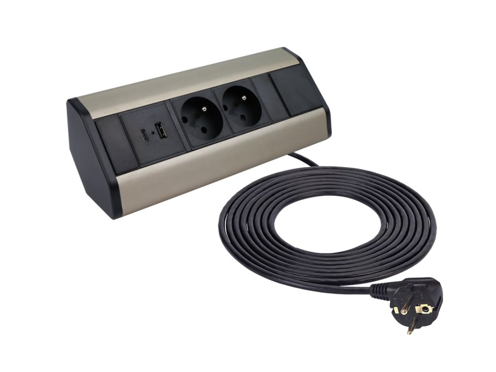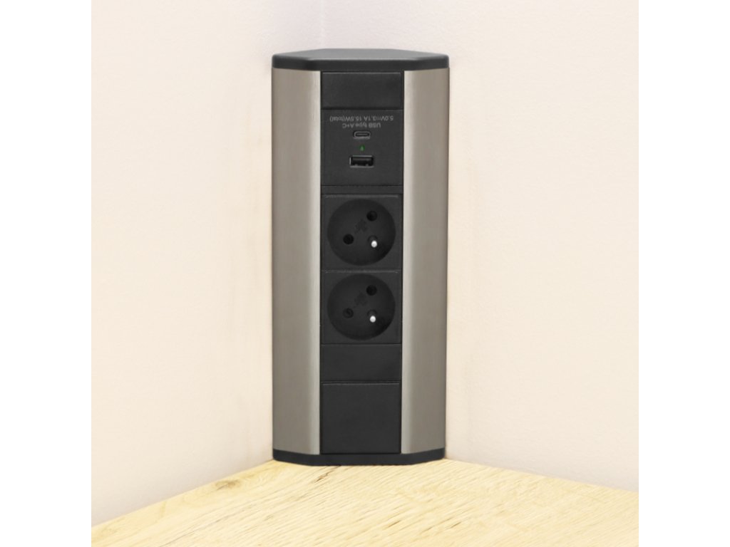 Zásuvková lišta rohová CORNER USB - 2x 230V + USB nab. A+C - nerez/černá