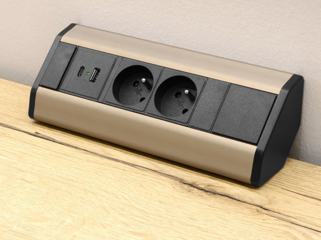Jednoduché rozšíření elektrických zásuvek na pracovním místě, ať už v kuchyni či pracovně nebo kanceláři. Zásuvka je pro naloženou montáž tedy na povrch stolu či kuchyňské linky. Určená pro montáž do rohu.