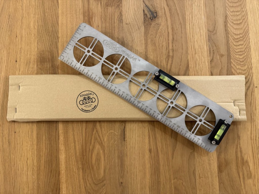 - Dvě vodováhy pro přesné horizontální i vertikální ustavení