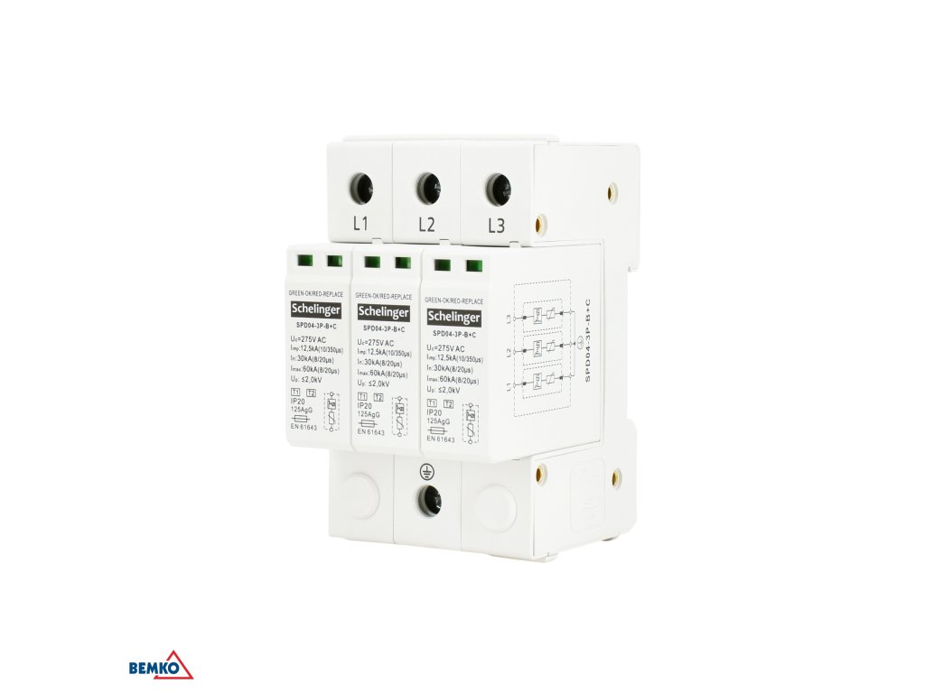 Svodič přepětí 3P 12,5kA třída T1+T2 (B+C) Schelinger