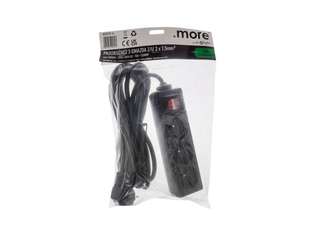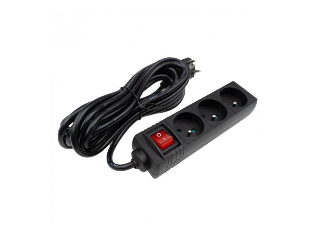 Prodlužovací přívod 5m - 3x zásuvka 3x1,5mm 16A černá s vypínačem