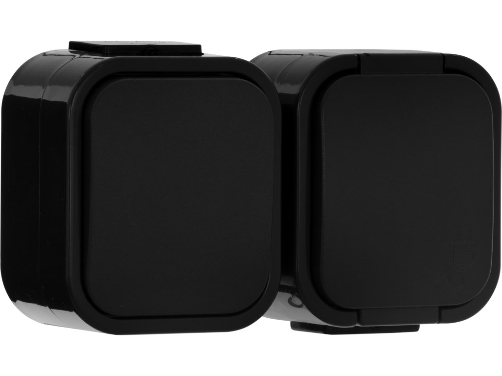 Zásuvka jednonásobná 2p+Z s víčkem + spínač IP54 černá