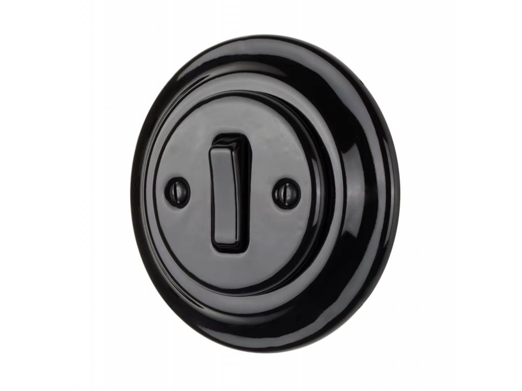 Porcelánový jednopáčkový vypínač zvonkový - černý