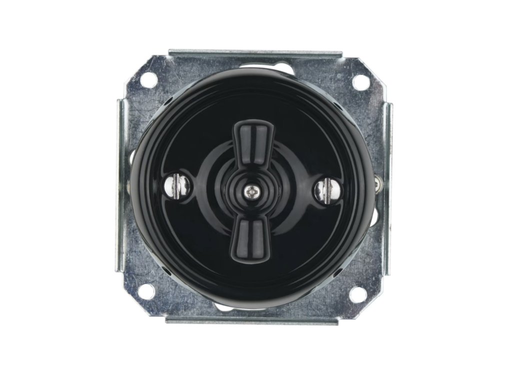 Porcelánový otočný vypínač bez rámečku - černý